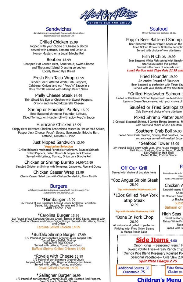 Our Menu Sports Grille Restaurant In Cranberry Twp Pa